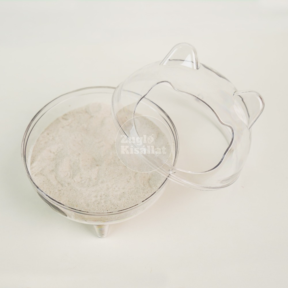 A lábakkal ellátott kialakítás stabilan tartja a tálat, így kevésbé borul fel, a fedeles megoldás pedig segít bent tartani a homokot, csökkentve a szóródást a ketrecben. Az átlátszó anyagnak köszönhetően könnyen megfigyelhető, ahogy kedvenced fürdik.