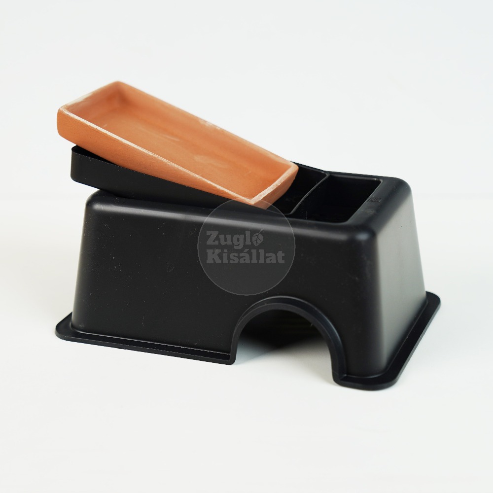 Praktikus, stabil és könnyen tisztítható búvóhely, amely ideális kisebb hüllők – például gekkók, gekkófélék vagy kisebb siklók – számára. A háromrészes felépítés biztosítja az állat kényelmét és a terrárium higiéniáját.