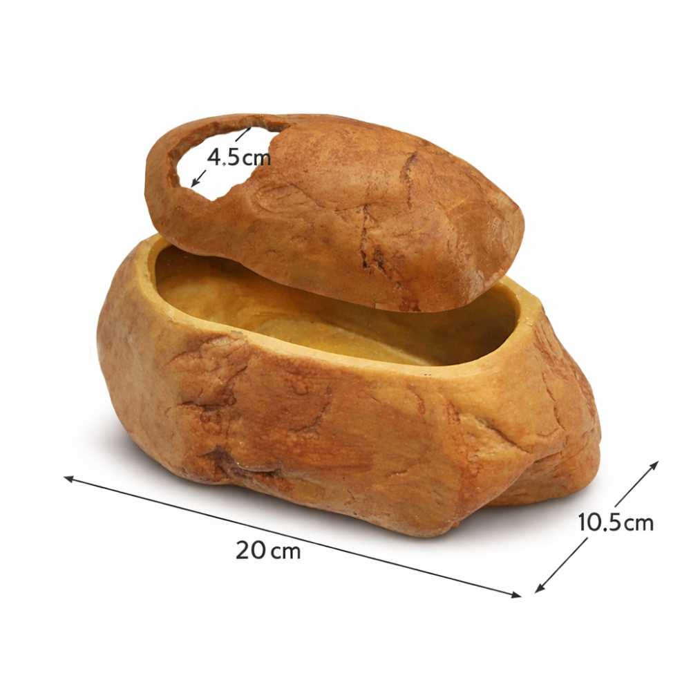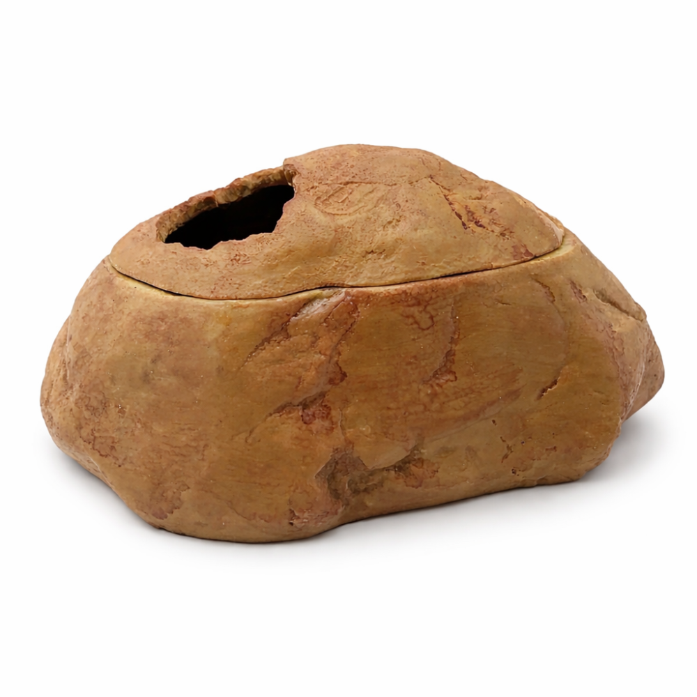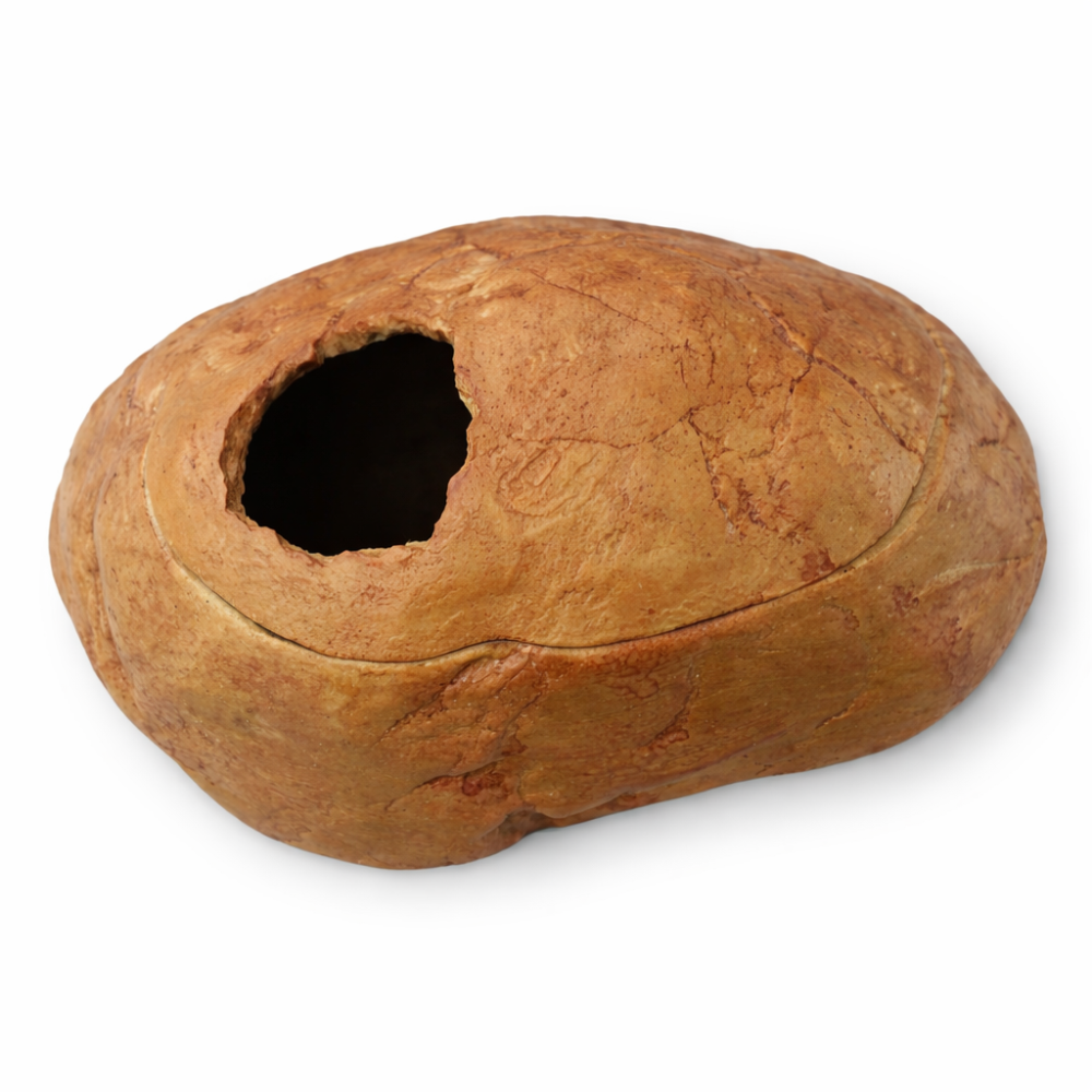 Természetes hatású, szikla formájú nedves bújó, amely ideális mikroklímát biztosít gekkók és más hüllők számára a vedlés időszakában. A zárt kialakítás segít megtartani a párát, így támogatja az egészséges, problémamentes vedlést.
